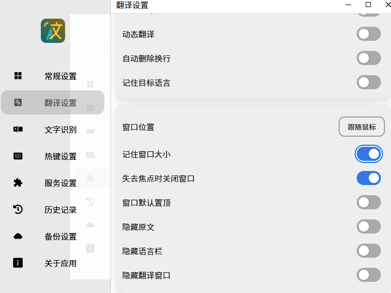 如果经常对大段文字进行翻译,原本的软件窗口是很小的,看起来别扭,记得开启这个记住窗口大小。