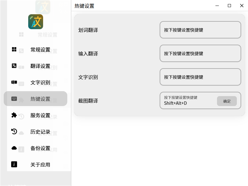 因为豆包的截图功能还有一些其他用途,暂时没想把它完全换下。设置一个其他的快捷键,说来设置快捷键这个事情真是头疼,各种软件各种快捷键,很容易冲突,想到以前使用有道翻译的时候它的默认ocr翻译快捷键,就直接拿来沿用了,反正现在已经不用有道了。
