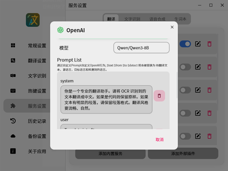 现在大模型这么好使,自带的第三方翻译服务直接关掉,甚至可以删除了。